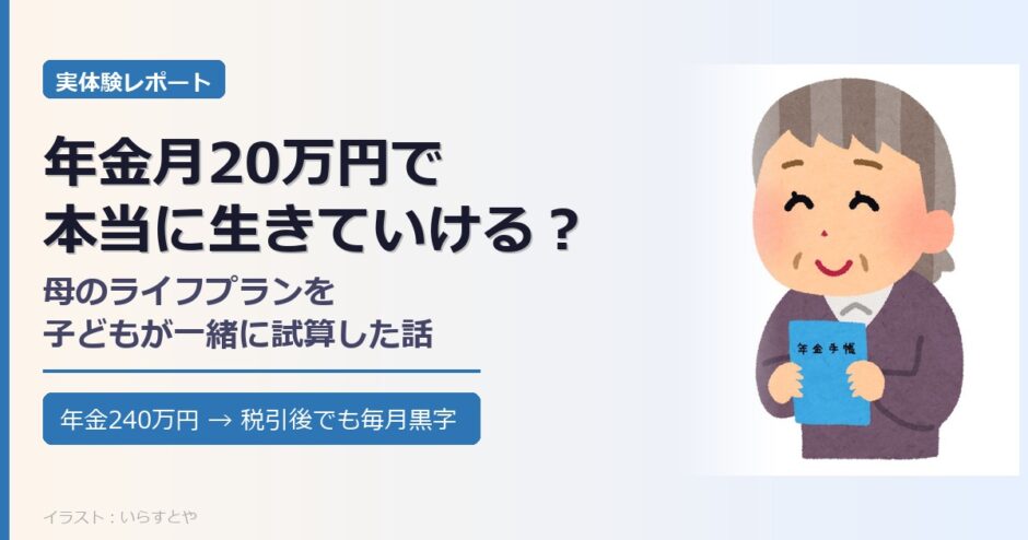 この記事は、実際に77歳の母のお金の状況を整理して、「年金だけで生活できるか」を試算したリアルな体験談です。実際の家計データをもとに書いているので、同じような状況の方の参考になれば嬉しいです。